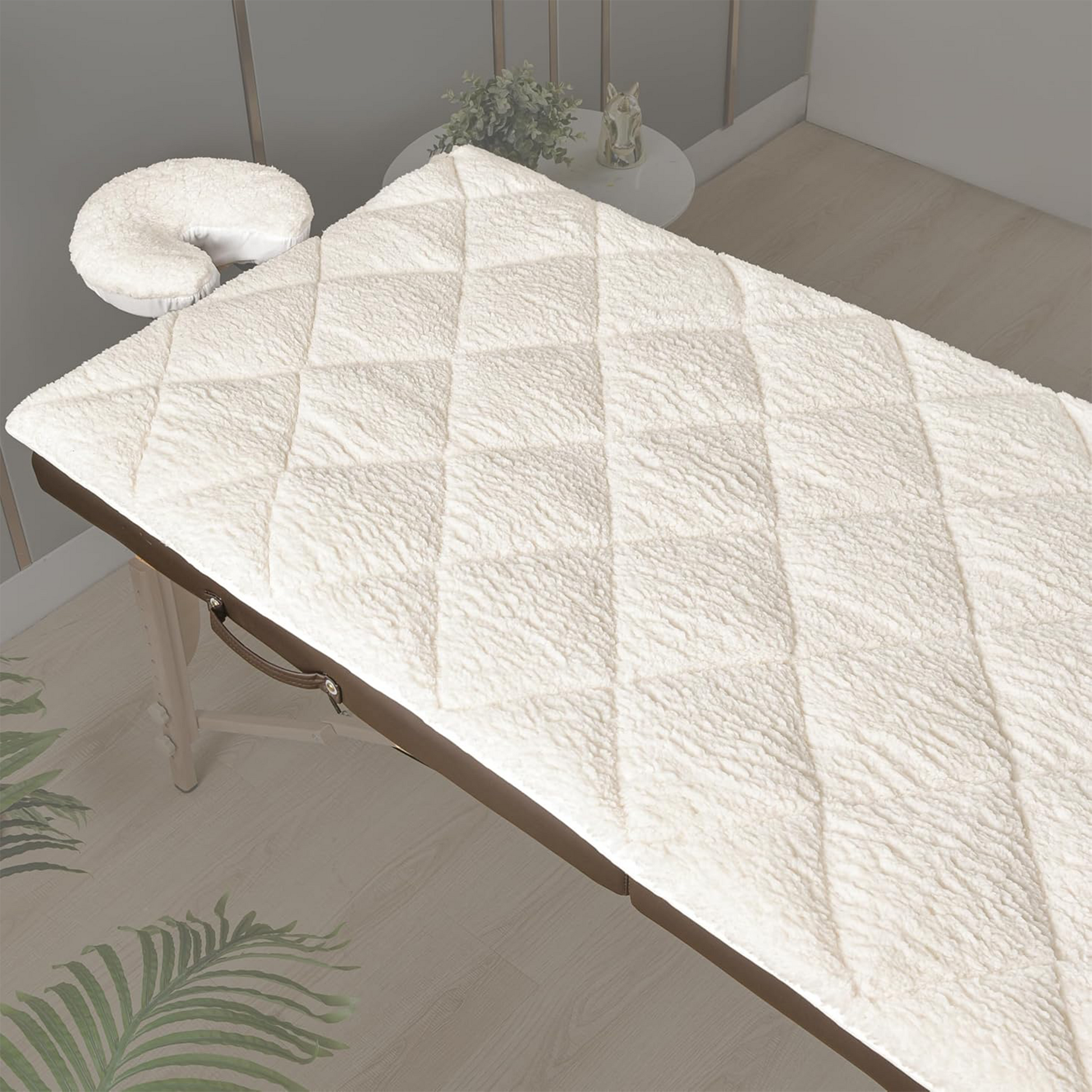 - DUAL-SIDED COMFORT FOR ALL SEASONS – This facial bed topper features a two-sided surface: plush 220gsm fleece for cozy warmth and smooth 105gsm microfiber for a cooler touch. Whether used as a massage table cushion topper or esthetician bed topper, it offers year-round comfort and adapts to your client’s needs. A must-have for massage beds and spa tables.