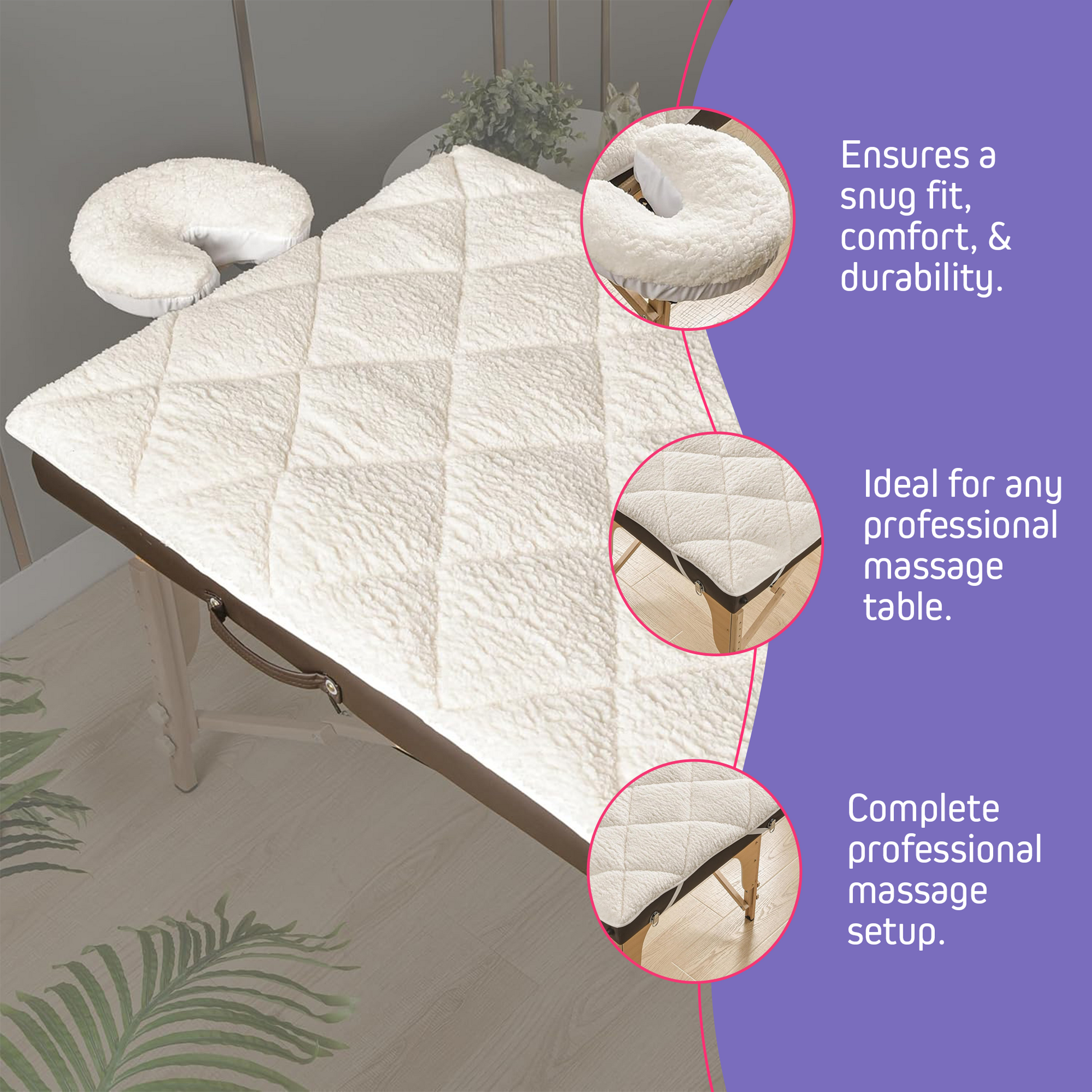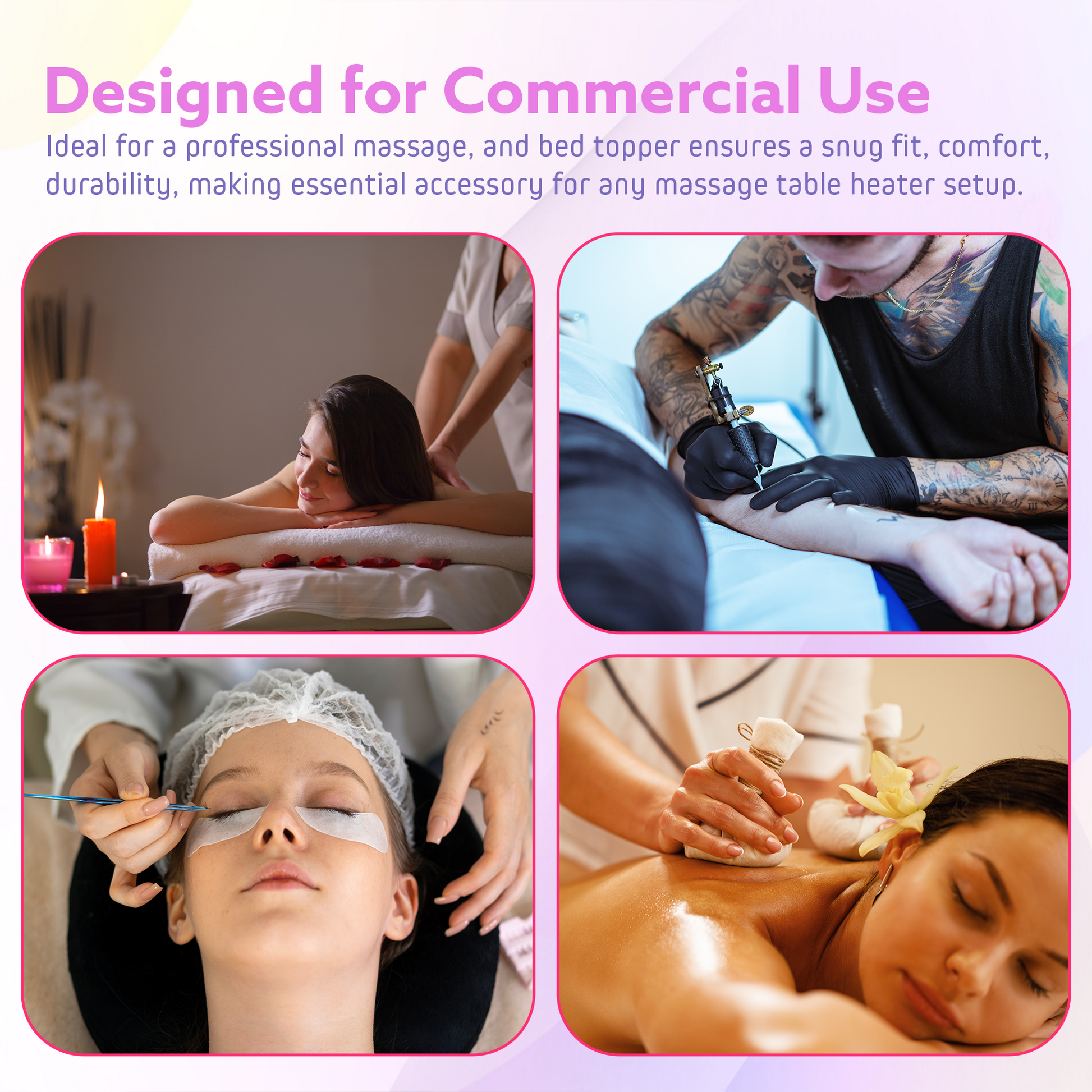 - SECURE FIT WITH CORNER STRAPS – Featuring strong elastic straps at each corner, this massage table pad stays firmly in place during treatments. Whether used on a facial table or massage bed, the fitted design keeps the pad smooth and professional. Pairs perfectly with a massage table face cradle cover for a full spa-ready presentation.